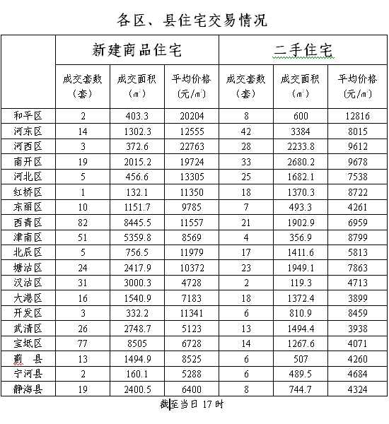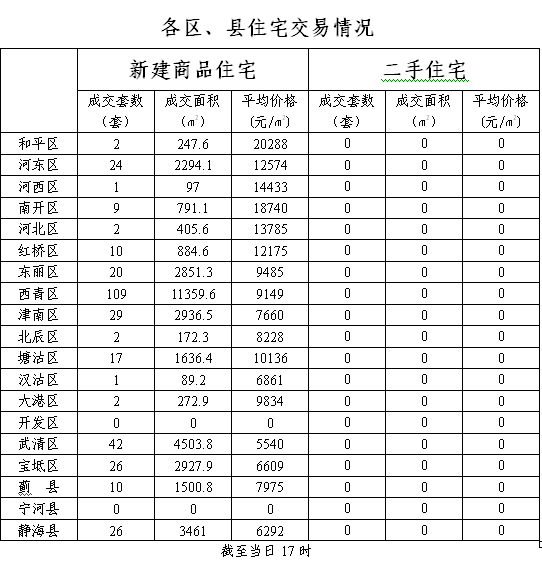 12月5日天津商品房二手房销售情况