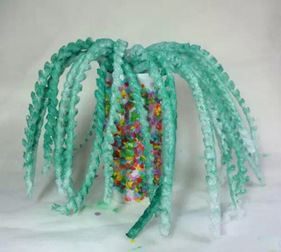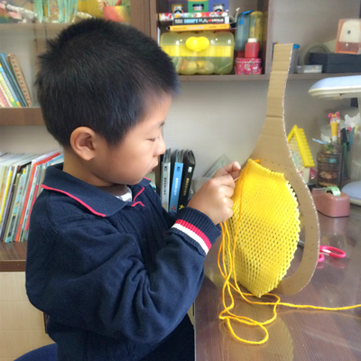 水果网套是泡沫材质,柔软可塑,利用这个特点可以进行塑形创意。