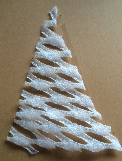 水果网套剪成树形,双面胶粘贴。