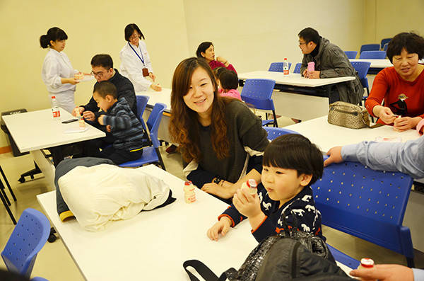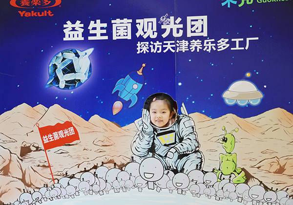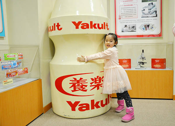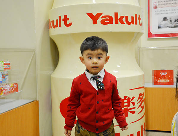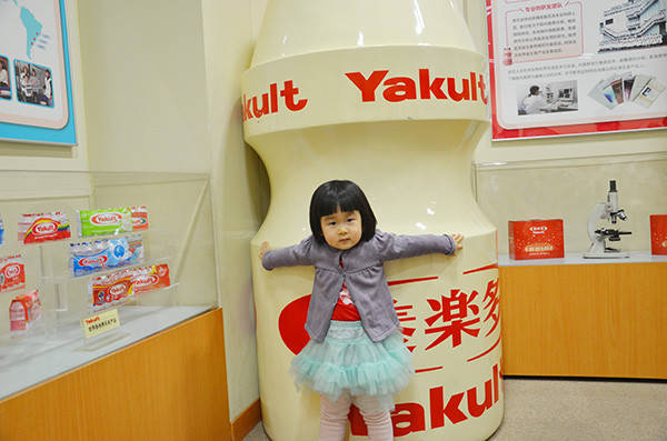 接下来就是工厂的参观过程啦,但是由于商业机密,不让拍照,小编真的很遗憾不能记录下那些奇妙的画面T^T,不过我们的可音可宝宝可是第一时间品尝到了新鲜美味的养乐多哦!