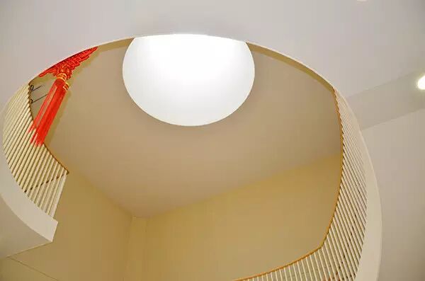上楼之前阿姨向我们介绍了整个工厂的外部结构,原来整个工厂就是按照一个特大号的养乐多瓶子制造的哦,你看!头顶上圆圆的地方就是养乐多的瓶口哦!