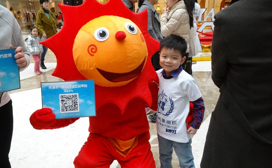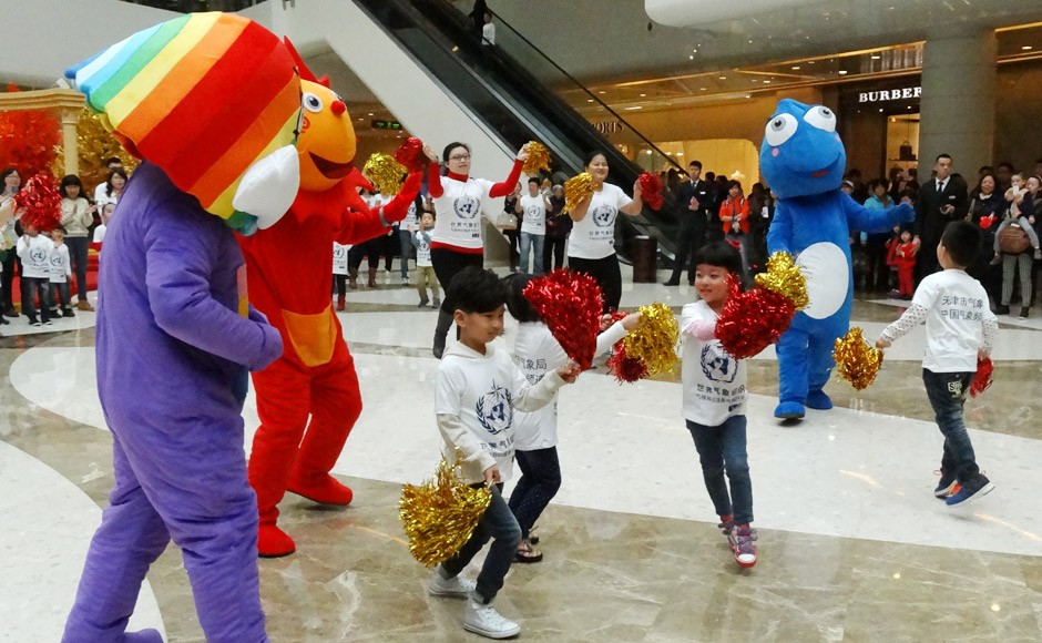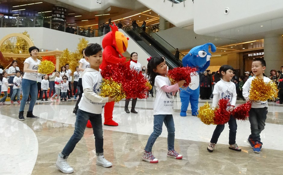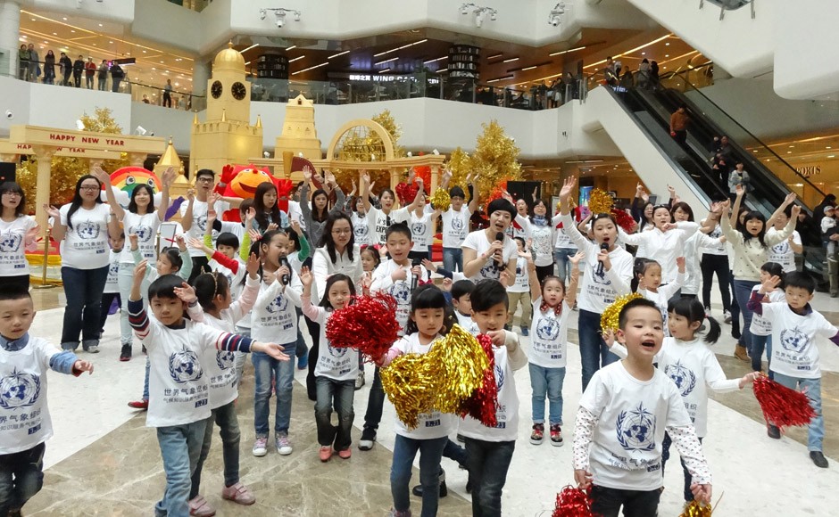 为迎接今年世界气象日的到来,今天,天津市气象局组织开展“青年气象人快闪活动”,来自市气象局的30余名青年职工和20余名热心的小朋友统一穿着印有“天津市气象局”标志及今年世界气象日主题语“气候知识服务气候行动”的T恤衫,以歌曲和舞蹈串烧的方式进行了近7分钟表演,引来不少市民驻足观看。
