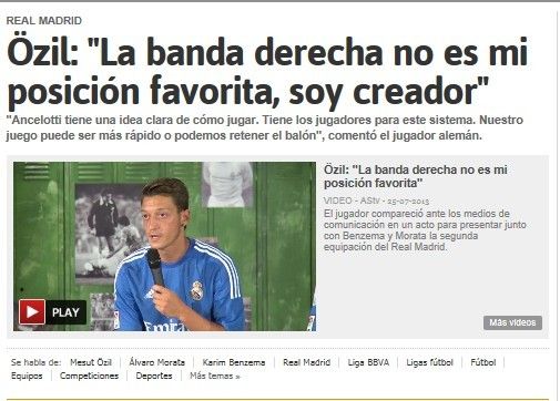 厄齐尔进一步阐述道:“过去的两场比赛,我在右路踢得都不如意,我感觉自己的组织才华被埋没了,而我认为这恰好是我们进攻的重要动力。但我没有办法改变什么,能否上场与什么位置都是教练决定的,我只能接受安排。”被问及和意大利新帅的关系如何时,厄齐尔收敛了开始的咄咄逼人,称自己对安切洛蒂的第一印象是积极的,后者的人品和魅力也值得称道。