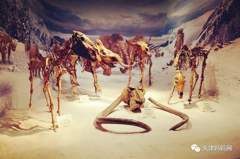 后面的《冰河世纪》背景墙,让天津小孩对眼前的化石有了更直观的联想